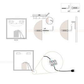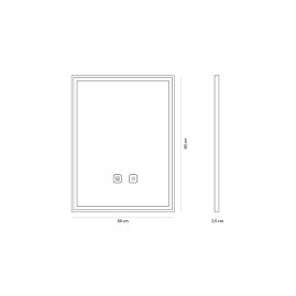 Disponible en medidas de 60x80 cm y 80x80 cm. En los dos casos incorpora un LED frontal de forma rectangular al interior del marco y un sistema antivaho. Ambos mecanismos se activan y desactivan mediante un sensor táctil situado en la parte frontal del espejo.