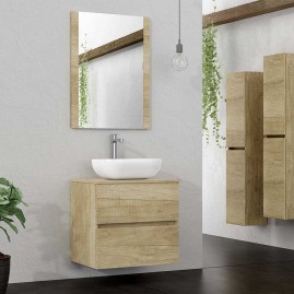 Puedes elegir un sobre de madera y un lavabo sobre encimera o una encimera cerámica para crear tu mueble de baño.