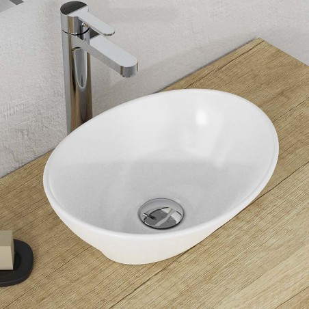 Lavabo cerámico sobreencimera combinable con un mueble y un sobre de melamina.